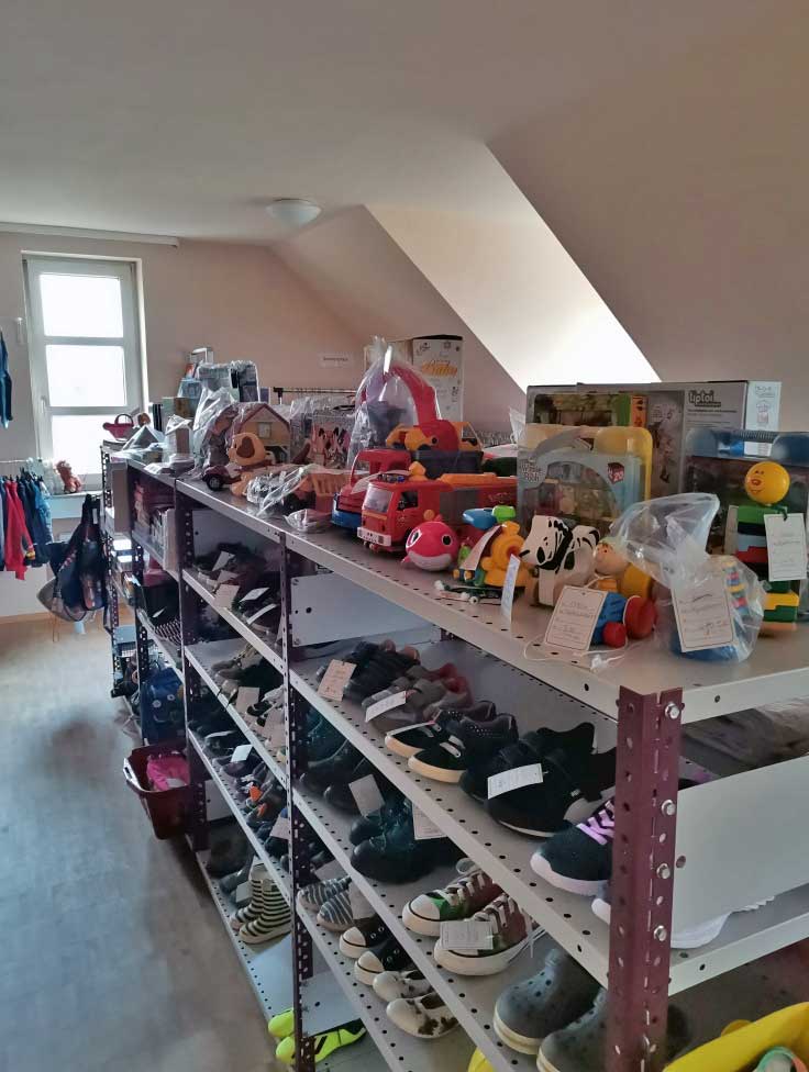 L'un des premiers magasins d'occasion à Schweinfurt dédié à une bonne cause, K.A.T.ZE (Kinderausstattungszentrale des Sozialdienst katholischer Frauen e.V., centre d'équipement pour enfants du service social des femmes catholiques), a ouvert ses portes en 1991 au 30 Seestraße.